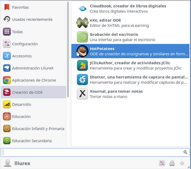 Una vez instalado podemos acceder al hot potatoes desde Inicio > Creación de ODE > Hot potatoes: