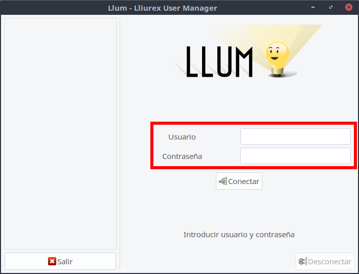 Para exportar usuarios en LDAP debemos abrir el Llum en el Zero-center en Inicio > Administración de LliureX > Zero center, centro de administración de LliureX. Y iniciamos el Llum: