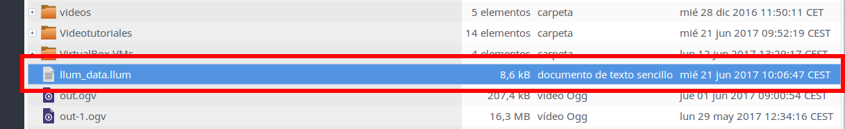 Podemos ver cómo se nos ha creado un archivo llum_data.llum que ocupa bastante poco, ya que sólo contine los nombres de usuario.