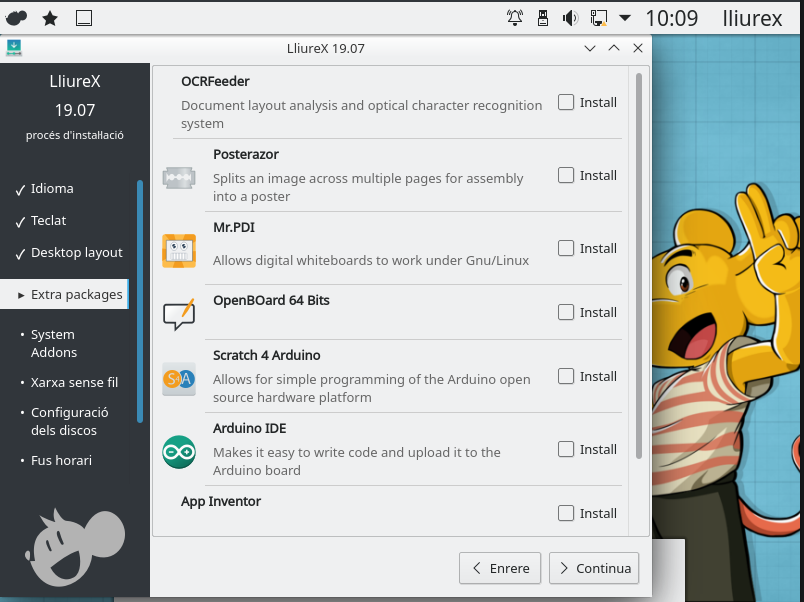 | Infantil | En aquesta versió s'instal·len els programes per a una aula d'Educació Infantil. |