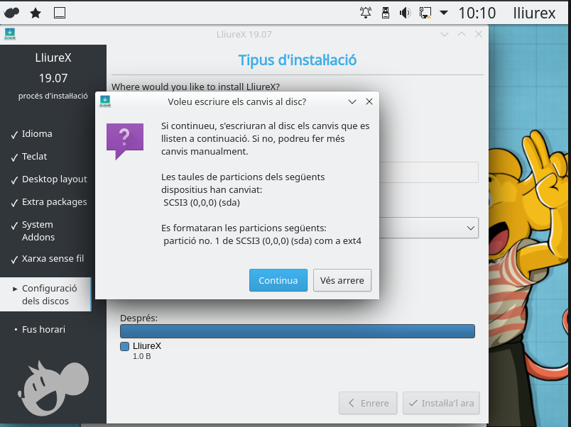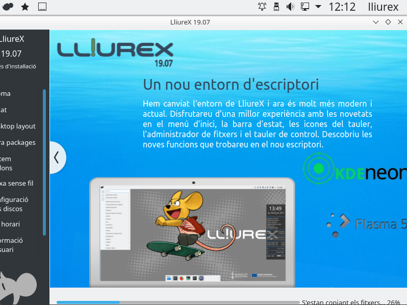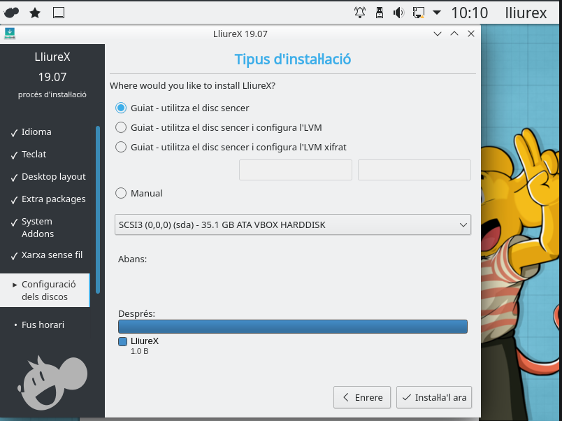 Si volem provar abans la ISO i veure els programes que hi ha, podem provar-la. Després no cal que reiniciem l'ordinador per a fer la instal·lació sinó que podem anar directament a un enllaç del escriptori: