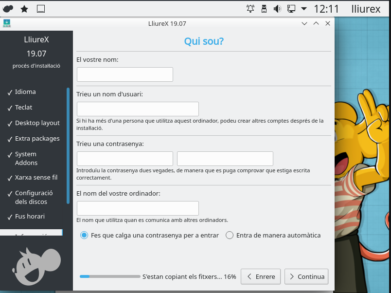 El primer que hem que fer és triar la llengua amb què volem seguir el procés d'instal·lació: