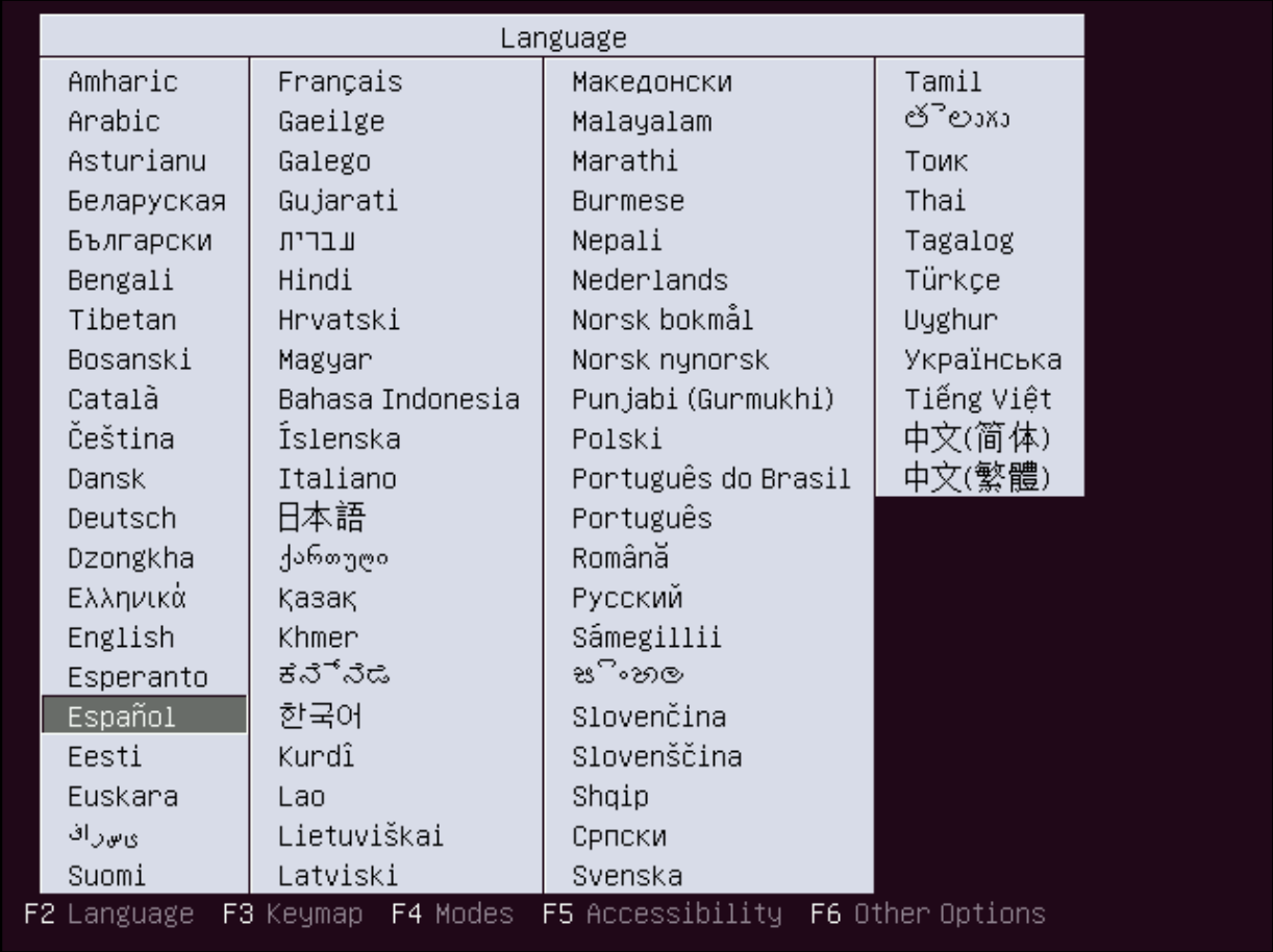 El primer que hem que fer és triar l'idioma amb què volem seguir el procés d'instal·lació: