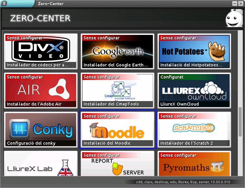 Una vegada seleccionat, es mostra una finestra des de la qual podem accedir a l'eina Instal·lació del Moodle (pestanya Programari).