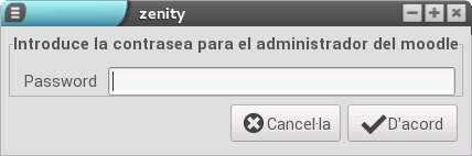 En un determinat moment, es mostra un altre diàleg per a demanar-nos la contrasenya d'administrador del Moodle. És molt important fixar una contrasenya que puguem recordar fàcilment, ja que en cas contrari tindrem problemes d'accés com a usuari administrador.