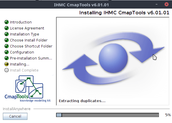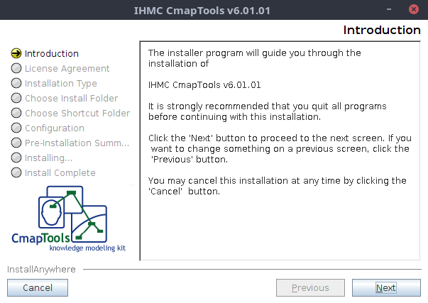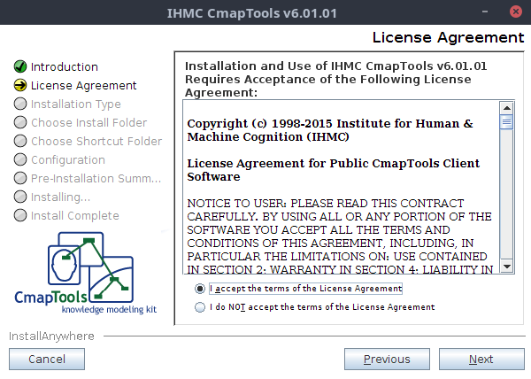 Cuando le damos a Acceptar empezará el instalador de Cmaptools.