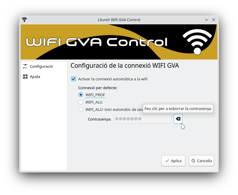 L'opció que mostra per defecte aquest desplegable serà la que s'haja configurat prèviament amb LliureX-Wifi-GVA-Control.