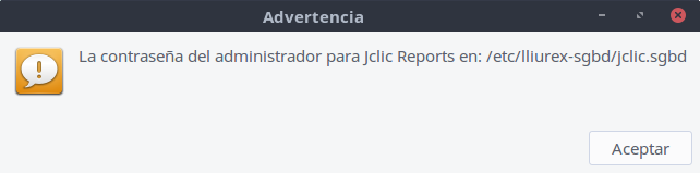 Podem verure com ens indica on estan guardades les contrasenyes del Jclic reports server, la cntraseña que tenim guardada per defecte és: jclic_pwd