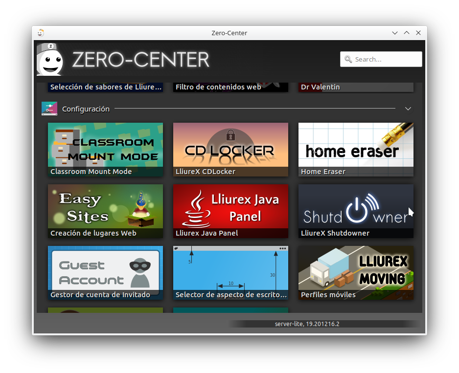Podem accedir al LliureX Java Panel des d'Inici > Administració de LliureX > Zero Center, centre de control de LliureX:
