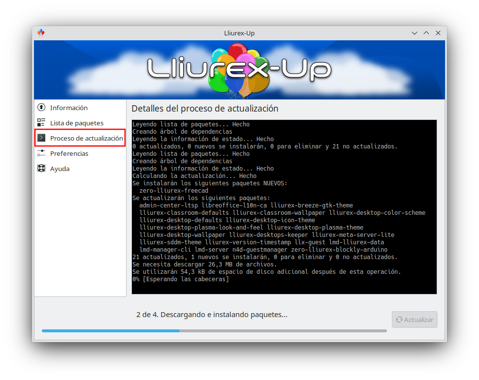 Lliurex-Up es la herramienta incluida en LliureX para la actualización del sistema.