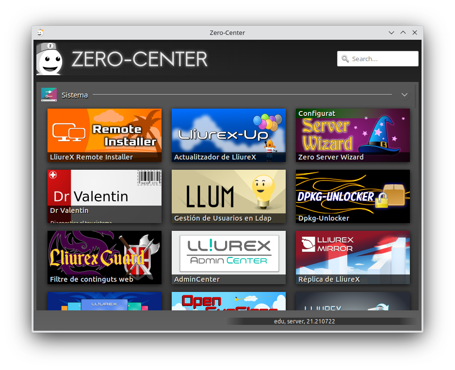 Lliurex-Up pot executar-se mitjançant l'accés disponible en la secció Administració de LliureX del menú d'aplicacions , o bé mitjançant el zomandament de la secció Sistema del Zero-Center: