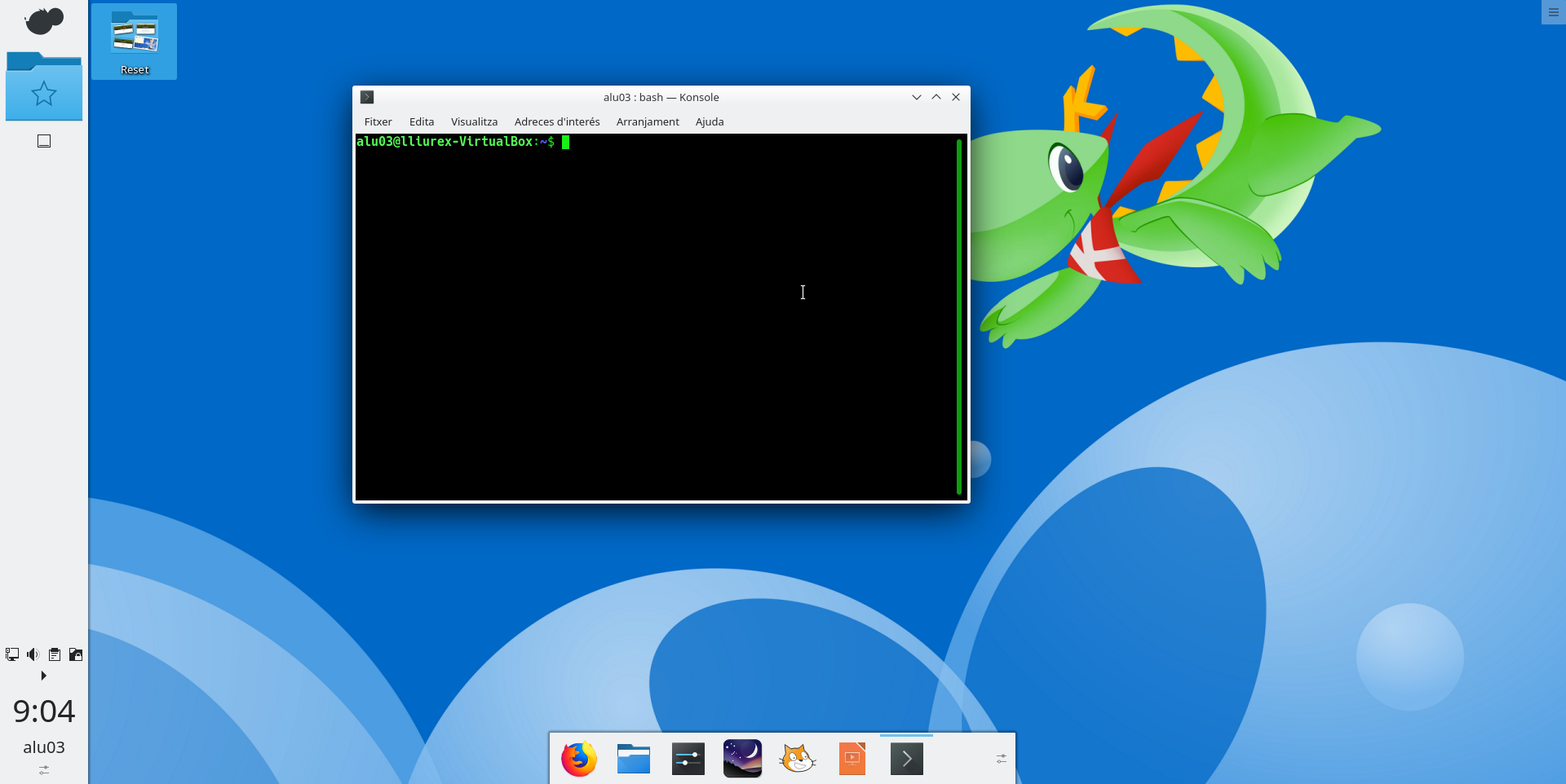 Després de reiniciar la sessió, l'escriptori tornarà a mostrar la configuració original per defecte.