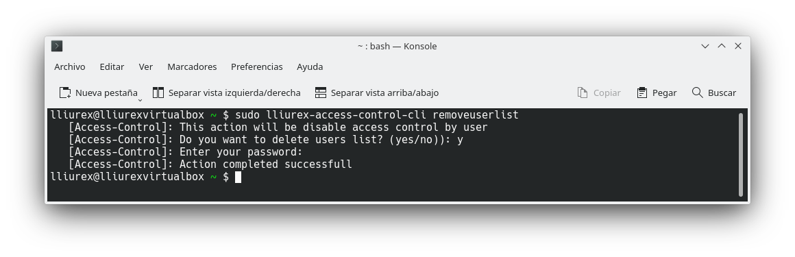 • Borrar la lista de usuarios: lliurex-access-control-cli removeuserlist