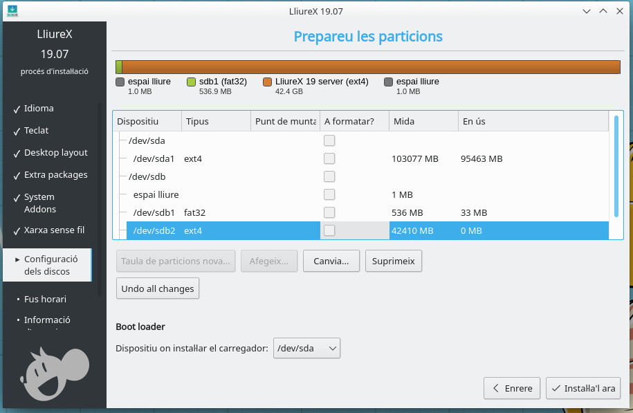 Si tenim el /net en el mateix disc dur, una de les opcions per les quals podem optar és iniciar el servidor amb el livecd de LliureX i abans de començar la instal·lació esborrarem tots els arxius excepte /net.
