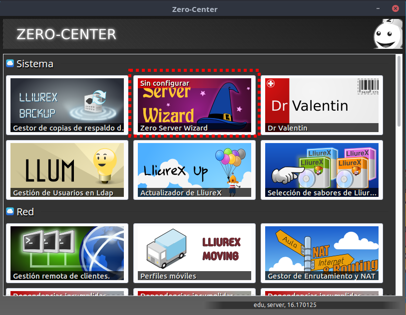 Para ello vamos a Inicio > Administración de lliureX > Zero Center > Centro de Control de LliureX.