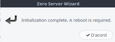 Se nos abrirá una ventana nueva, y volvemos a darle a Aplica para empezar el proceso de configuración del servidor maestro. Luego nos aparecerá un mensaje de confirmación para que reiniciemos el sistema: