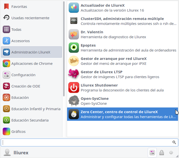 Para ello vamos a Inicio > Administración de lliureX > Zero Center > Centro de Control de LliureX.