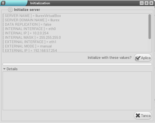 Una vegada fixats els paràmetres, polsem el botó Aplica. Es mostra, llavors, una pantalla on es resumixen totes les opcions que ha configurat i en la que polsem el botó Aplica.