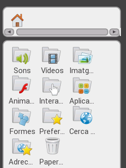 Aquesta subfinestra, ubicada en la part esquerra, conté tant les carpetes i fitxers/projectes, com els elements que s'han enviat a la paperera.