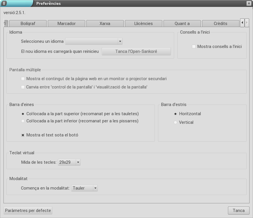 En la part inferior de la pantalla tenim el botó Paràmetres per defecte que restaura les opcions inicials i el botó Tanca, que guarda els canvis seleccionats.
