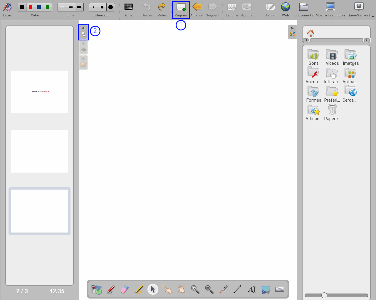 Per a afegir algun dels recursos disponibles, hem de navegar per les carpetes i, una vegada seleccionat el recurs, arrossegar-lo a la zona de la pissarra interactiva.