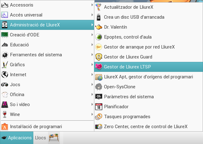 Per a arrancar l'aplicació hem d'accedir al menú Aplicacions -> Administració de LliureX -> Gestor de Lliurex LTSP: