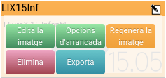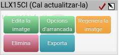 Una vegada validat, es mostra una finestra amb les imatges que hàgem creat prèviament. En aquesta mateixa pestanya, podem editar i gestionar les imatges, a fi d'actualitzar o afegir-hi nou programari. A més, en situar-nos amb el ratolí sobre una imatge creada, i en cas de no estar realitzant cap operació crítica sobre l'LMD, es mostren opcions per a: