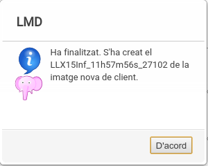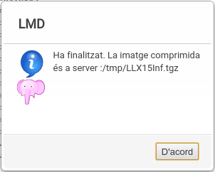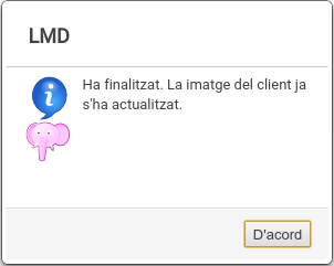 A l'acabar, LMD mostra una notificació indicant que ha finalitzat el procés (amb o sense èxit) i la ruta del fitxer generat.