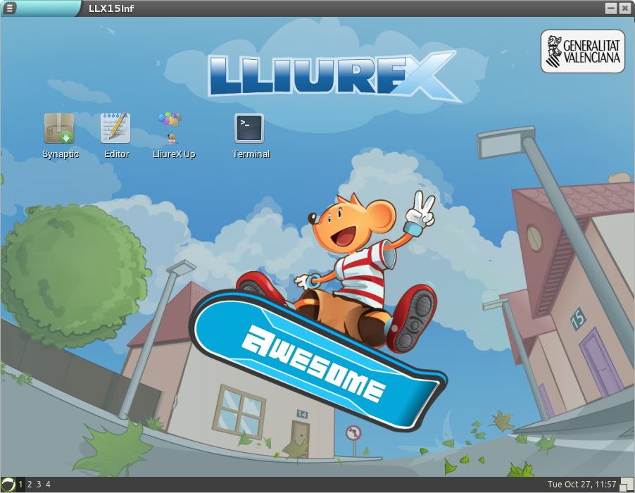 Per a modificar la imatge, polsem el botó Edita la imatge i s'obri una finestra nova, iniciem sessió en l'escriptori Awesome del client mateix. Des d'este entorn lleuger, disposem d'opcions per a executar el LliureX Up o el Synaptic per a actualitzar paquets, entre altres opcions: