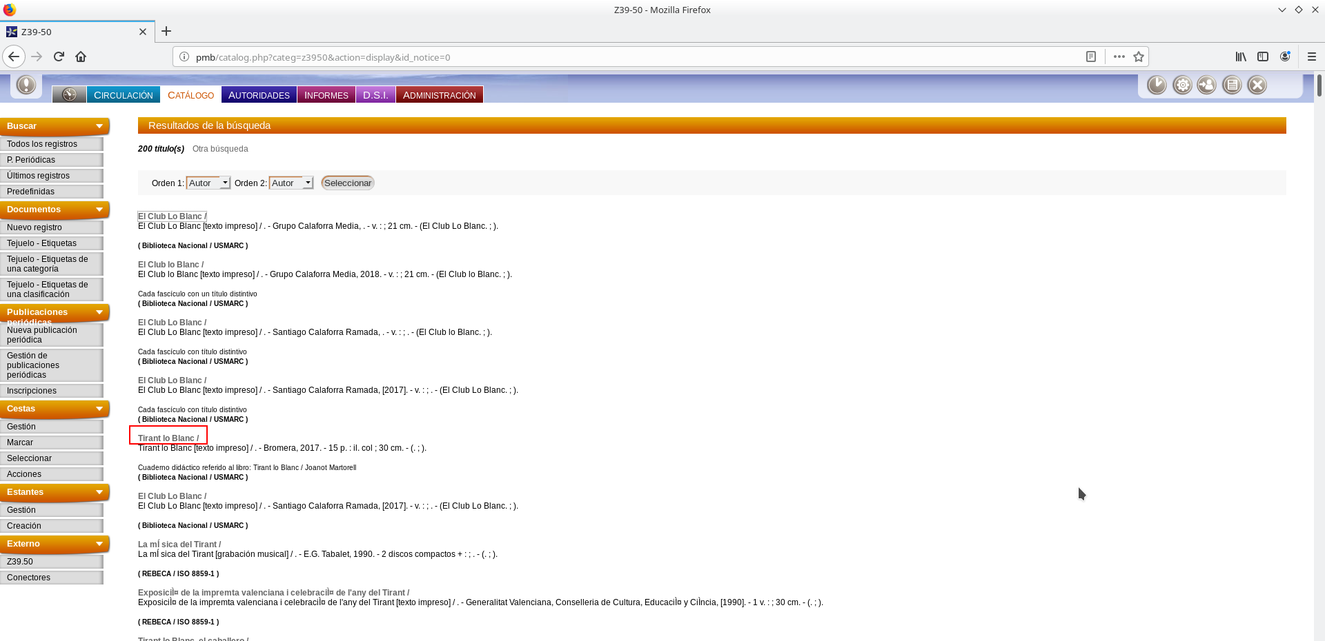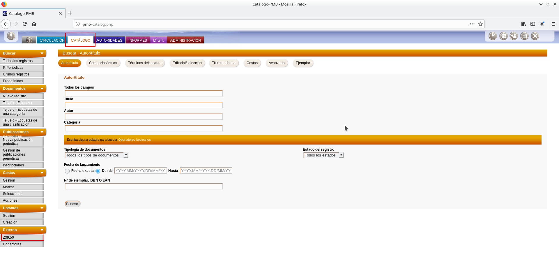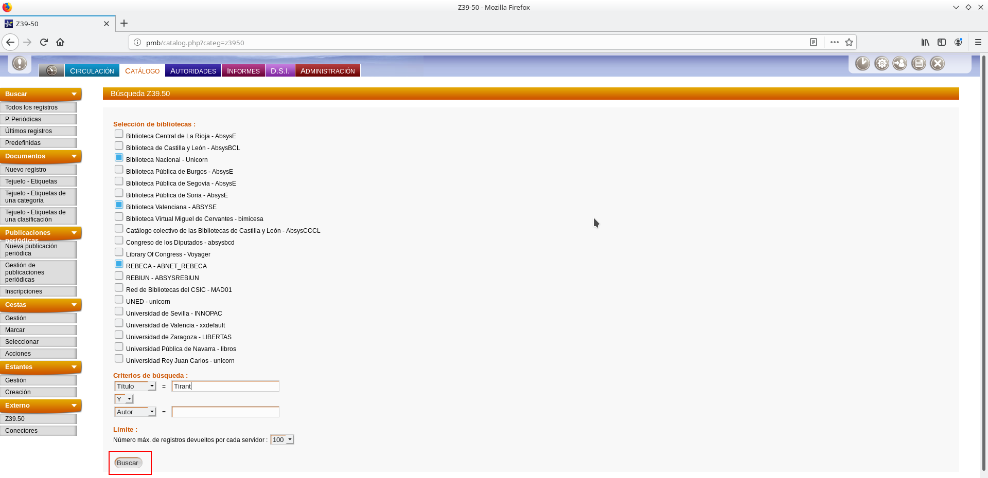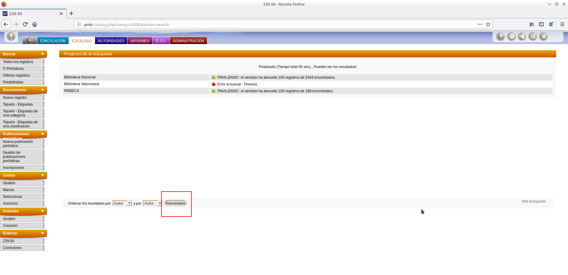 Historial: PMB: Utilización del servicio z39.50