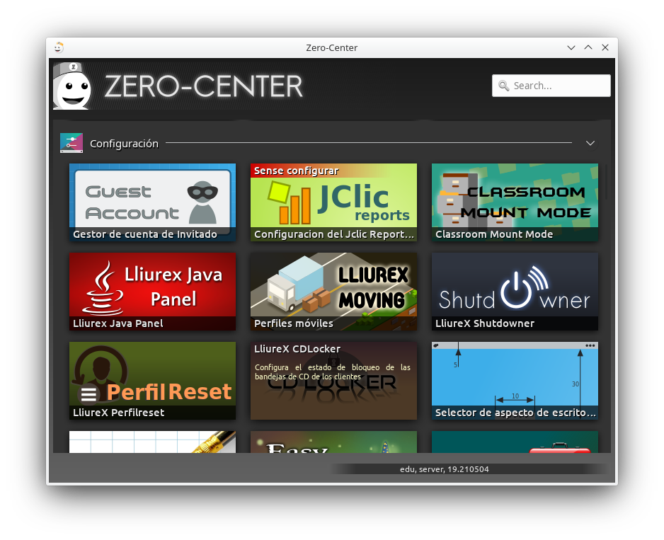 Per a accedir a la interfície gràfica, hem d'accedir al Centre de control de LliureX. Per a això, ens dirigim al menú Aplicacions -> Administració de LliureX -> Zero Center, centre de control de LliureX.