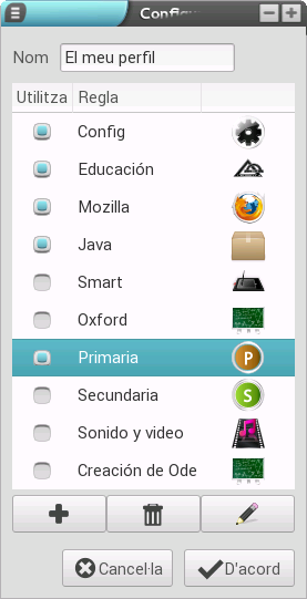 L'última operació consisteix en la selecció d'algun dels perfils disponibles. Per a això hem de polsar sobre la casella de selecció del que volem utilitzar i s'aplicarà, des d'aqueix moment, el perfil seleccionat.