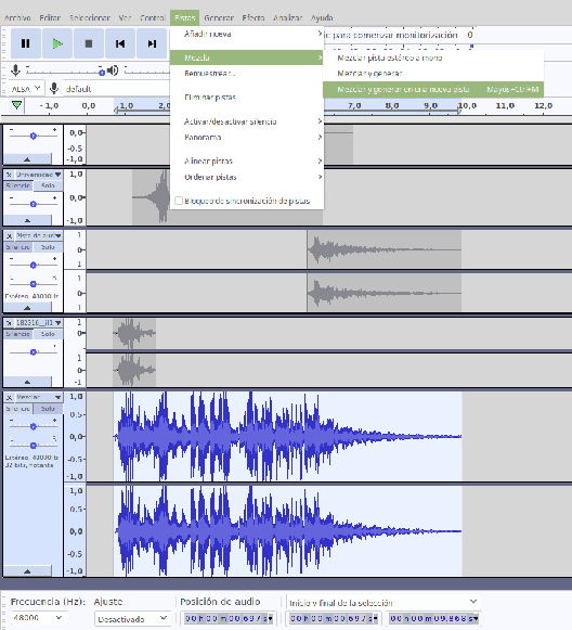 - Amb tot muntat en l'Audacity, equalitzat, retallat... només haurem d'exportar la mescla a una nova pista.