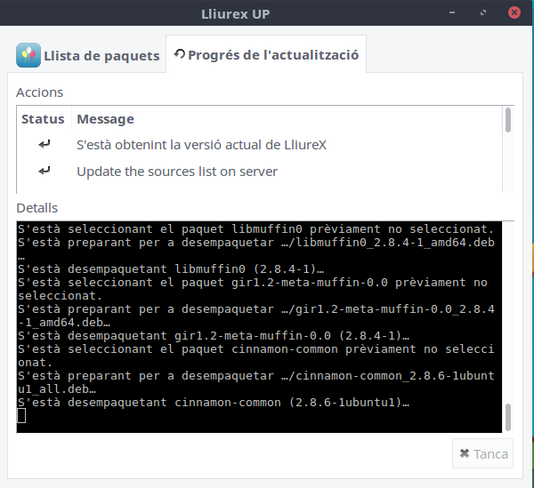 En el circulo de arriba a la derecha podremos ir viendo el progreso de la actualización/creación, esto se estará ejecutando aunque cerremos la ventana.