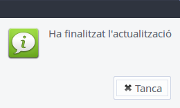 Al acabar nos aparecerá un mensaje indicando que se ha finalizado la actualización y por tanto ya podemos salir de esta aplicación: