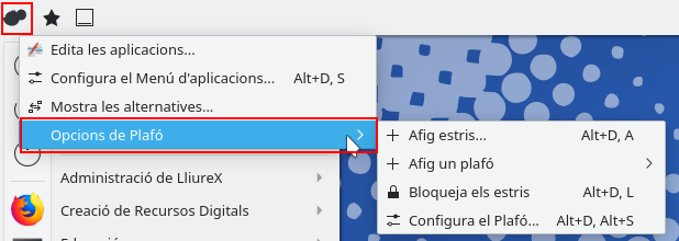 Se describe a continuación las distintas zonas que componen la barra de menú del escritorio de LliureX 19.