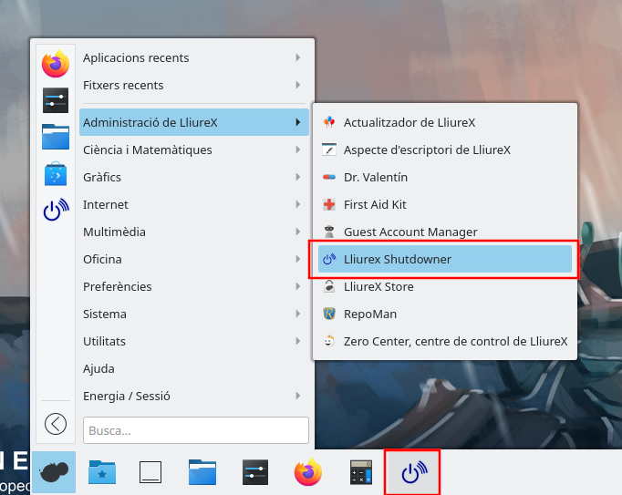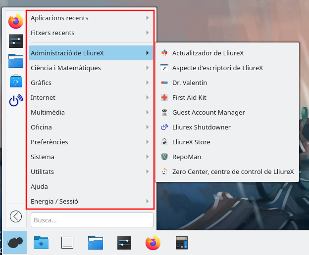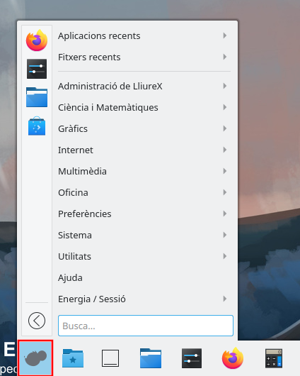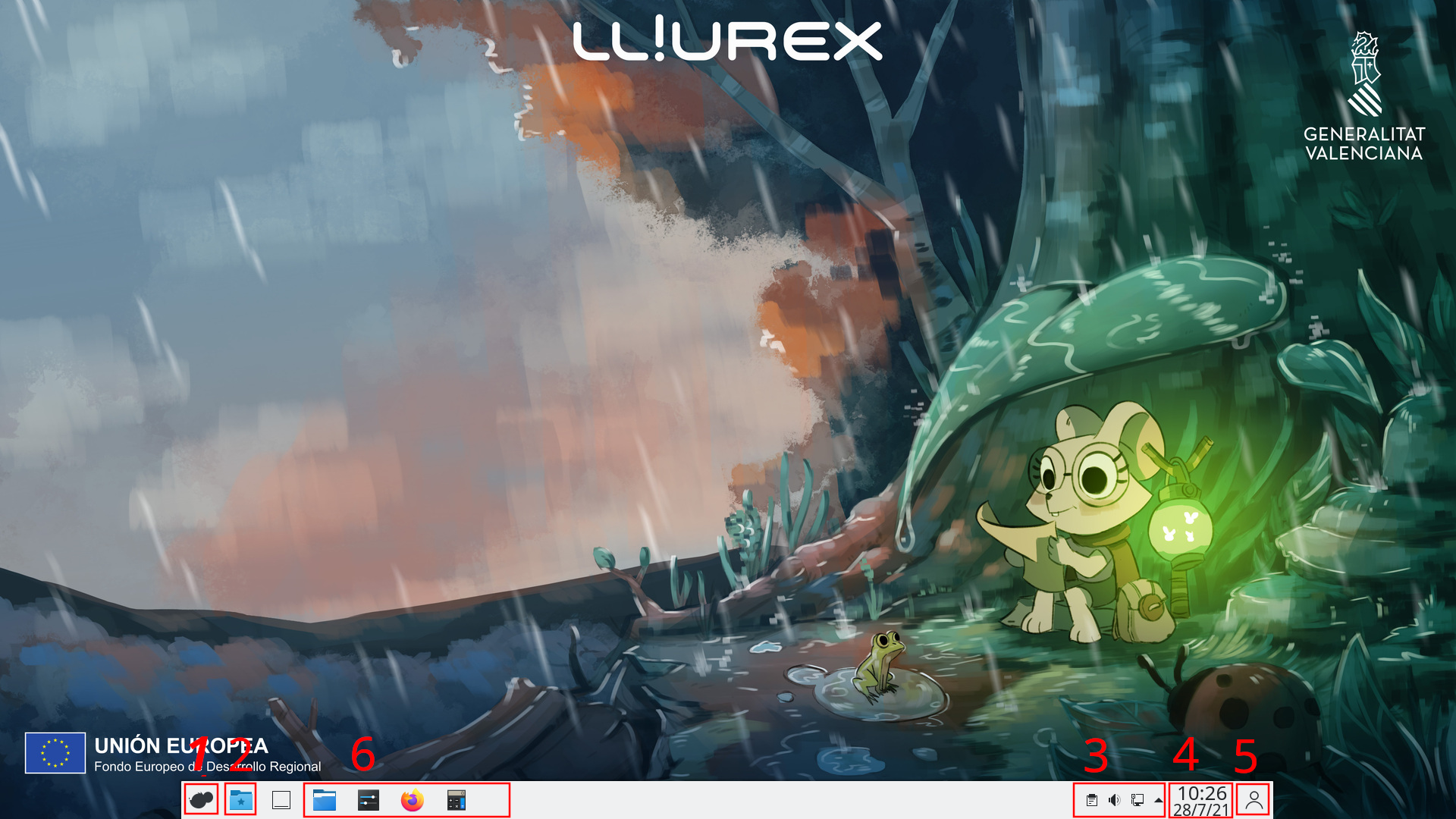 A continuació es descriuen les diferents zones que componen la barra de menú de l'escriptori de LliureX 21.