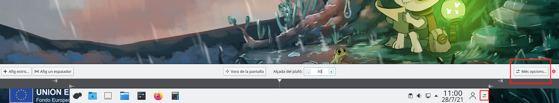 Si es fa clic amb el botó esquerre del ratolí sobre Configura el plafó és possible accedir a les opcions de personalització del gestor de tasques, per a per exemple establir la visibilitat del gestor de forma que siga sempre visible o que s'oculte automàticament després d'uns segons.