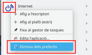 Per a eliminar l'aplicació de la zona de favorits n'hi ha prou amb fer clic sobre aquesta amb el botó dret del ratolí i triar l'opció Elimina de preferits.