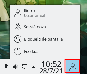 El selector d'usuari es pot personalitzar si es fa clic amb el botó dret del ratolí per a, per exemple, mostrar el nom complet de l'usuari, etc