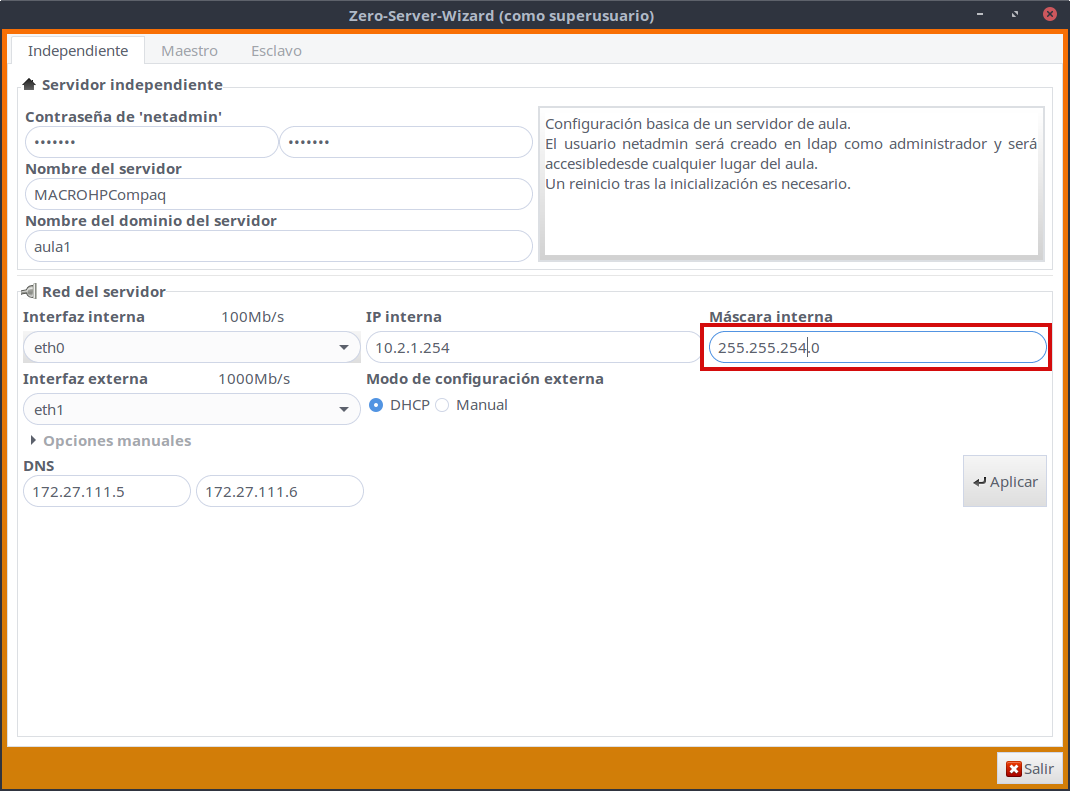 Es recomendable si queremos hacer un cambio en la máscara hacerlo reiniciando el servidor o cambiándola en configuración de red.