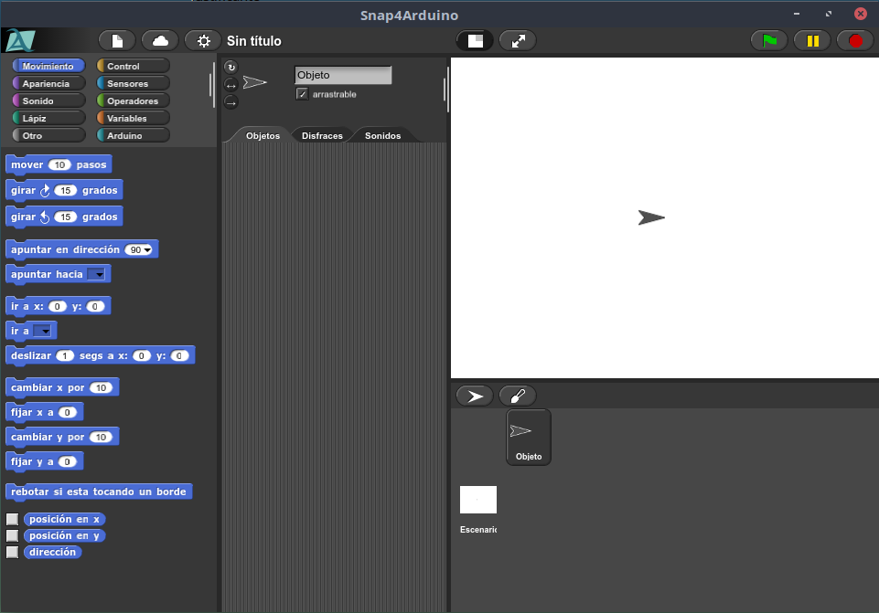 El entorno exactamente igual al paquete Snap! pero con la diferencia de que nos aparece el apartado especial para arduino.
