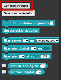 En estos momentos ya podemos volver a Snap for Arduino y "Conectar Arduino". El programa entonces se conectará con la placa: