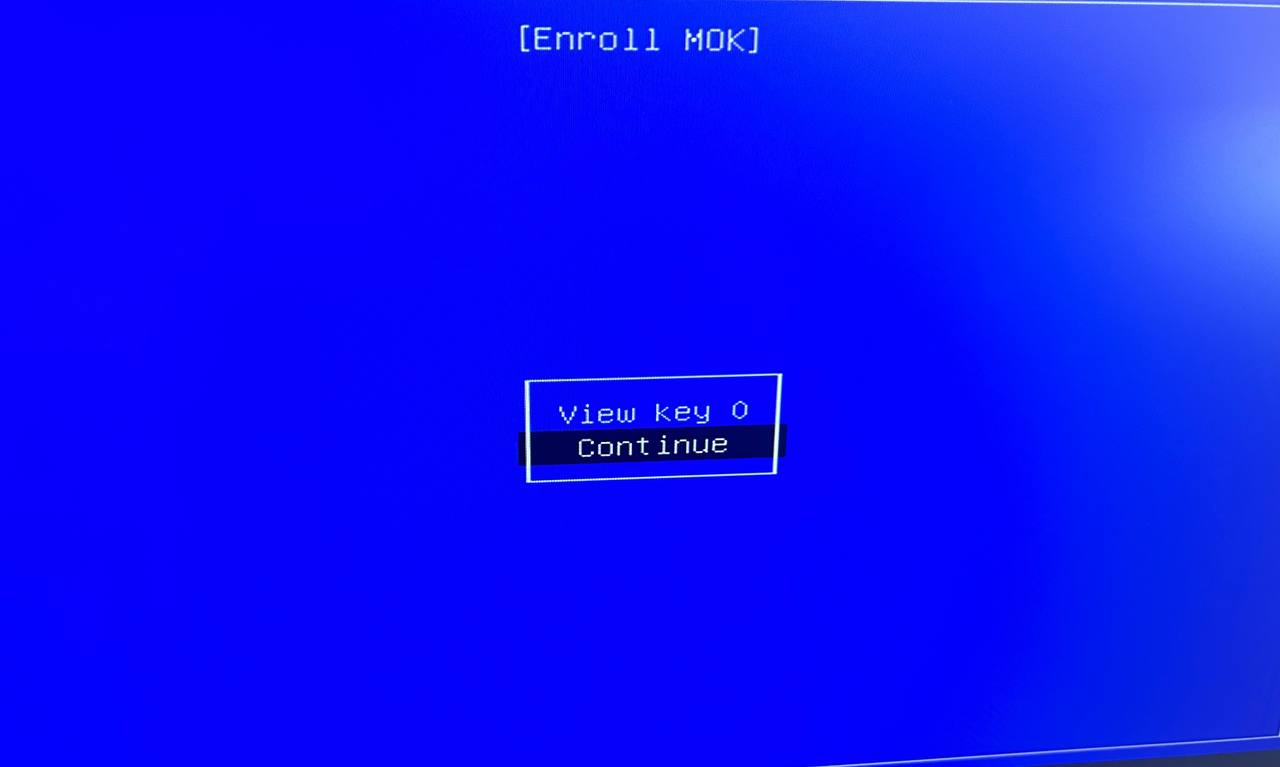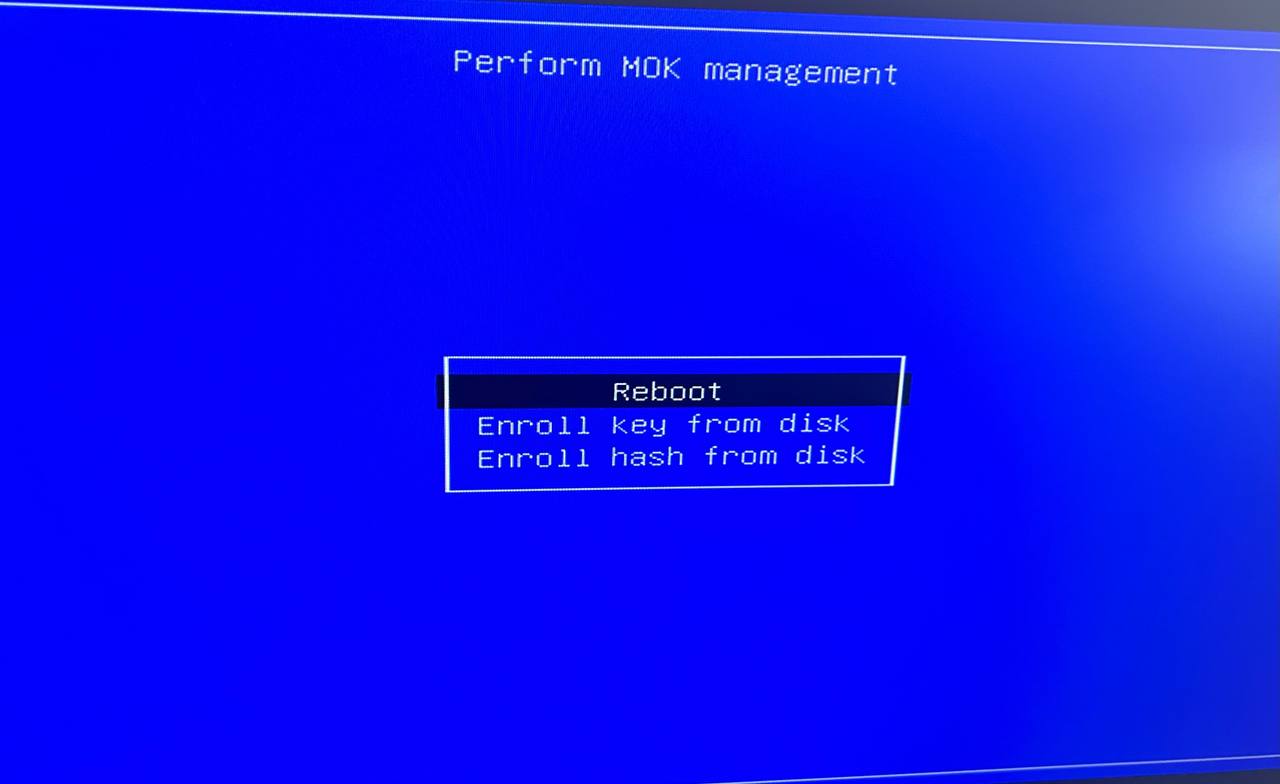 Así que llegado este momento le daremos a reiniciar al equipo y autoáticamente entraremos en el MOK manegement para su configuración y enrolado, así que de las opciones que se nos presentan elegimos Enroll MOK