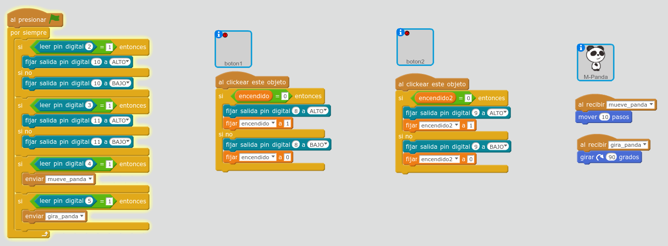 | Modo arduino | Con el modo Arduino podremos traducir nuestro programa en Scratch a C y cargarlo directamente a nuestro Arduino. |